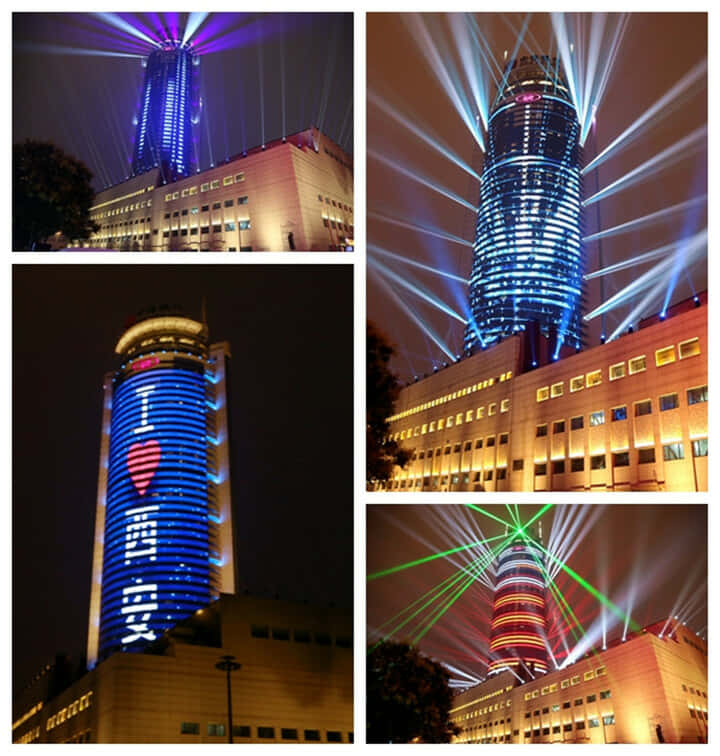 陜西信息大廈是古城西安的地標(biāo)性建筑之一,是西安城市夜景亮化設(shè)計(jì)中的重要項(xiàng)目之一,位于西安市碑林區(qū)西安市文化科技體育中心。項(xiàng)目總建筑面積11.39萬(wàn)平方米,總建筑高度228米,成為當(dāng)時(shí)西北地區(qū)第一高樓。建設(shè)施工中采用了24項(xiàng)新技術(shù),是國(guó)內(nèi)8度抗震區(qū)鋼筋混凝土結(jié)構(gòu)最高建筑;是西安第一個(gè)集國(guó)際五星級(jí)酒店、5A級(jí)寫(xiě)字樓及商業(yè)配套為一體的綜合性高端商務(wù)大廈;大廈擁有西安最高、最先進(jìn)的高速客用電梯及第一個(gè)頂樓直升機(jī)停機(jī)坪。樓體共安裝了40萬(wàn)顆LED點(diǎn)光源、156盞全彩光束燈,兩臺(tái)激光燈,布放各類(lèi)線纜2萬(wàn)余米。愛(ài)克萊特為其提供EXC-P40BP 點(diǎn)光源40萬(wàn)顆,全彩洗墻燈W42B 800套。愛(ài)克萊特,用燈光點(diǎn)亮眾多城市地標(biāo),創(chuàng)造城市燈光精品。