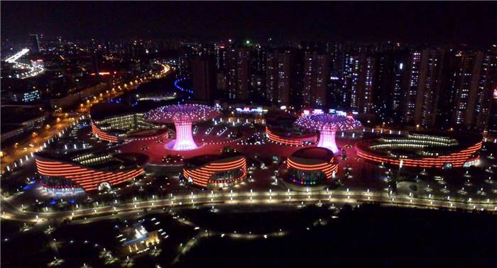 整個公園取義“海濱文化”理念,海之泉、海之光、海之琴……簡潔柔和的海濱色調(diào),優(yōu)美圓弧型的線條,時尚大氣的建筑,將建筑與照明設計手法完美融合,閃爍的燈光點綴在綠色海洋中的主題廣場上,將濱海城市的獨特魅力演繹得生動自然。
