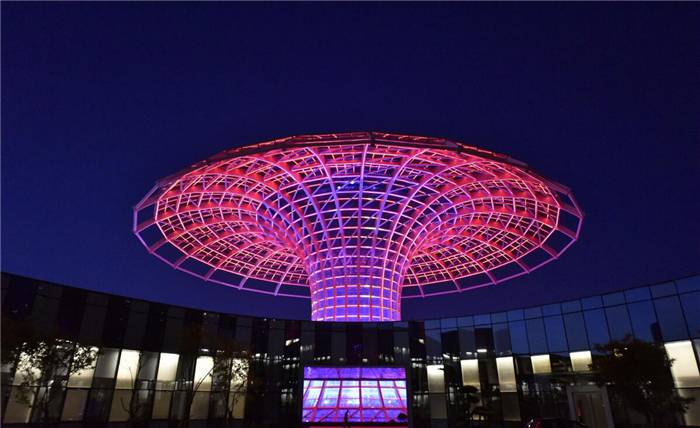 蘑菇造型的“海之泉”燈光設計的表達主要通過專業(yè)的動態(tài)控制系統(tǒng)表達靈動的海水、浩瀚的星空、多彩的海底世界等各種燈光效果,訴說著海之泉的故事。