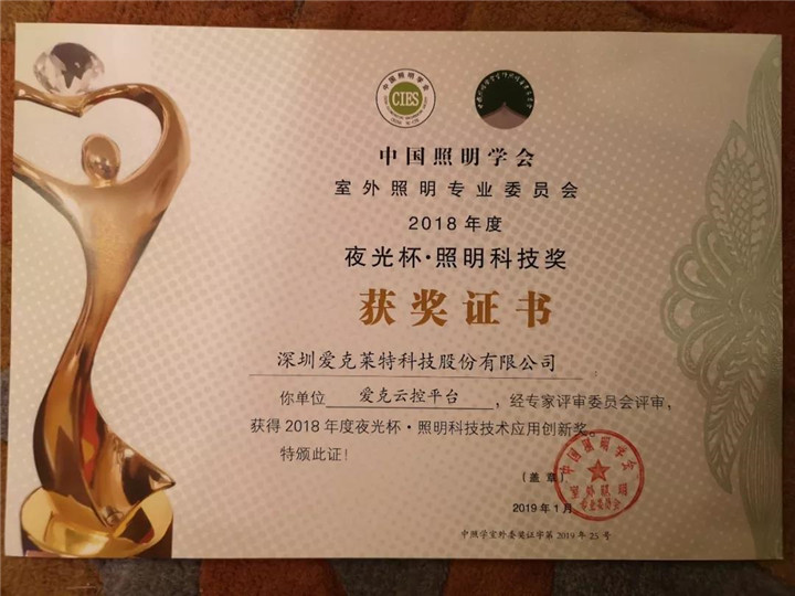 在頒獎(jiǎng)典禮上,大會(huì)對(duì)論壇同期評(píng)審出的2018中國室外照明“夜光杯”創(chuàng)新獎(jiǎng)項(xiàng)進(jìn)行了盛大頒獎(jiǎng)儀式。愛克萊特EXC-ECCP 2.0云控平臺(tái)榮獲“2018年度夜光杯?照明科技技術(shù)應(yīng)用創(chuàng)新獎(jiǎng)”,愛克萊特副總經(jīng)理張麗代表公司領(lǐng)取獎(jiǎng)項(xiàng)。愛克萊特始終堅(jiān)持以技術(shù)為驅(qū)動(dòng),挑戰(zhàn)領(lǐng)域技術(shù)革新,解決行業(yè)高尖難題。第一家大規(guī)模應(yīng)用DMX512控制技術(shù)于點(diǎn)光源,第一家大規(guī)模應(yīng)用遠(yuǎn)距離多色視覺亮度一致性技術(shù),第一家首次大規(guī)模使用4G無線互聯(lián)控制技術(shù),第一家推出基于物聯(lián)網(wǎng)平臺(tái)的愛克EXC-ECCP 2.0云控平臺(tái)。