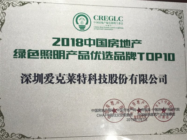 2019年1月6-7日,“大國廣廈 美好生活——致敬改革開放40周年暨CIHAF中國住交會20周年盛典”在北京盛大召開。此次論壇由中國房地產報、中國房地產網(wǎng)、中房智庫、中國住交會組委會聯(lián)合舉辦,鳳凰網(wǎng)房產戰(zhàn)略合作,旨在紀念改革開放40周年偉大發(fā)展征程,以及伴隨改革開放而起步的中國房地產行業(yè)的壯闊進程。深圳愛克萊特科技股份有限公司副總經(jīng)理王嵬毅攜精英團隊出席活動,并代表公司領取“2018中國房地產綠色照明產品優(yōu)選品牌TOP10”及“2018中國房地產綠色照明標桿項目”兩項重磅大獎。
