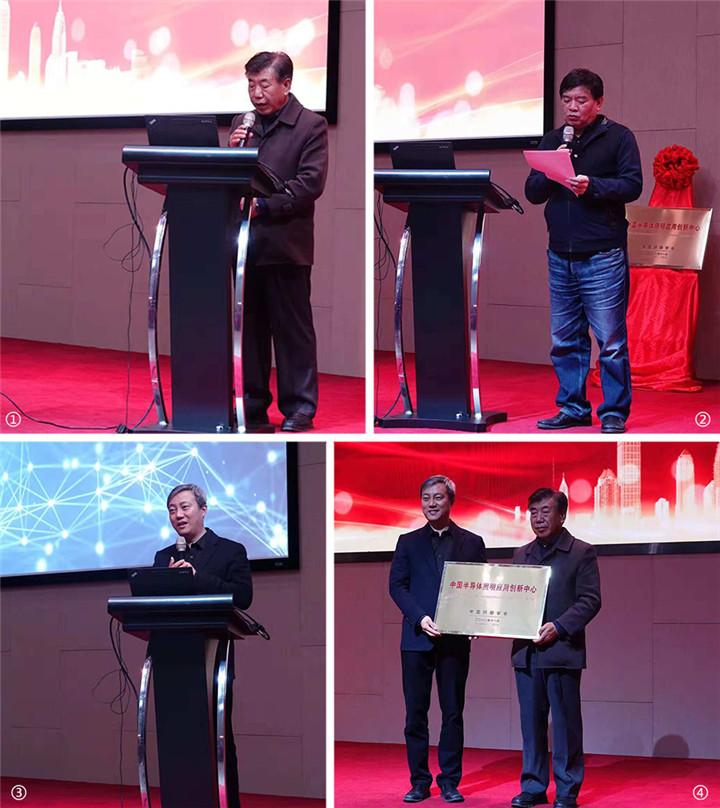 中國照明學會理事長邴樹奎(圖1)、中國照明學會秘書長竇林平(圖2)、北京清控人居光電研究院院長榮浩磊(圖3)、授牌儀式(圖4)