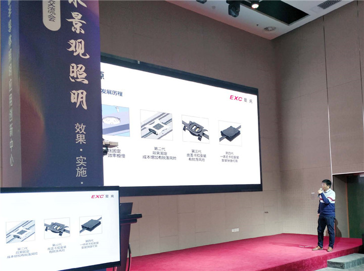 在互動交流環(huán)節(jié)中,研發(fā)總監(jiān)鄧利衛(wèi)則從技術層面講述愛克萊特在城市濱水景觀照明中所做出的科技創(chuàng)新,重點闡述愛克萊特點光源在型材安裝方式上的精進,以及輝度進化、光色演變、光學發(fā)展歷程、點光源未來的發(fā)展趨勢。
